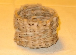 The leaves of the cattail are very useful for making cordage and baskets, but they cannot be used directly from the plant. The large amount of moisture in the leaves will cause them to burst if you try to twist them when they are still fresh. Pull or cut the leaves and lay them out in the sun for a day or two. This will remove enough moisture from them so that they can be twisted into cordage or woven into baskets. Cattail cordage is not strong enough to support much weight, but it is useful for tying together shelters, lashing items onto a pack board, or etc. Photo below: Cattail basket.