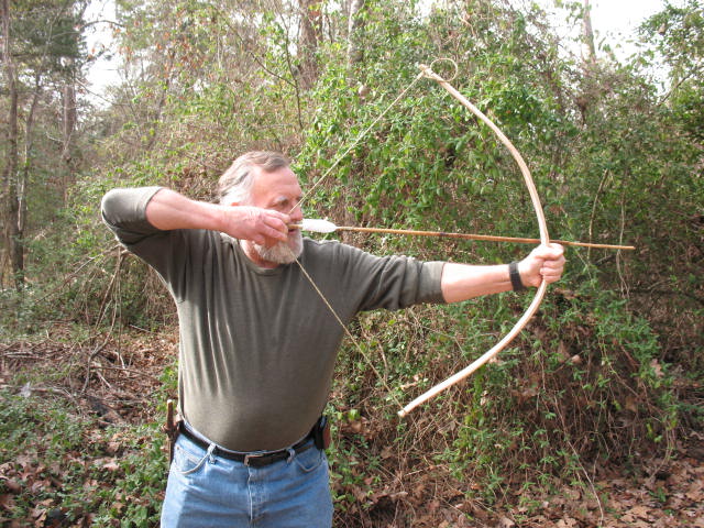 I strung the bow, and it was pretty close to right-on. The limbs were bent pretty evenly. There was a little jog in one limb, but nothing to bad. It had good flex when I pulled it back, and although I wouldn’t recommend it for bear hunting, I think it should easily take rabbits, coons, possums, and (if I was in a true survival situation) I would even try for a whitetail deer with it. Total time on project: about three hours.