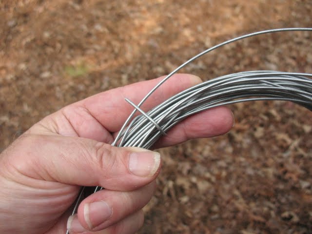 Let’s start with a primitive hook. If you have a vise, a hammer, a small file, and a pair of needle-nose pliers; it is not hard to make fish hooks out of the right kind of wire. What is the right kind of wire? Well, it can’t be too soft. If the wire is too soft it will straighten out when a fish starts fighting against it, and you will probably lose the fish. I have some wire that is fairly stiff that makes good hooks. If your wire is too soft, you can try heating the finished hook until it is cherry red and then quenching it in water. Sometimes this will harden the metal. Pictured below: Wire for hook making.