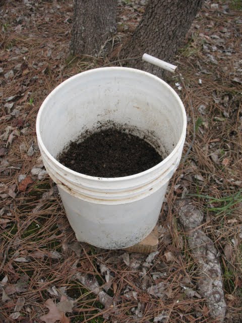 Once you accept the premise that fish will eat about anything, it makes it a lot easier to find bait. Of course the classic fishing bait is worms, and worms can be gathered while working in the garden and saved for later use. Worms like darkness, they like moisture, and they like rich loose soil. In the spring and summer I keep a plastic bucket in the shade next to my garden. I poke holes in the bottom of the bucket and put a few rocks in the bottom, then I fill the bucket about half full of dirt, compost, and manure and then I wet the contents down. When I come across a worm or a grub, I throw them in the bucket; not every worm, because earthworms are good for the garden. When I water the garden I water the worm farm as well. When I want to go down to the pond and go fishing, it’s a simple matter to grab a few worms or grubs and drop them into my bait can with a little dirt. Pictured below: A grub worm, and my mini worm farm.