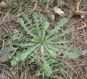 DISCLAIMER: Don’t believe anything I or any body else tells you about edible wild plants. Don’t eat edible wild plants based on what you see in a book or on the inter-net. Get a qualified instructor to show you the plants, and don’t eat them until the instructor shows you how to prepare them, and then eats them him or herself. Be aware that you may be allergic to a plant that someone else can eat without harm. Be sure that any plants that you gather have not been sprayed with pesticides or herbicides. Pictured below: Dandelion Greens