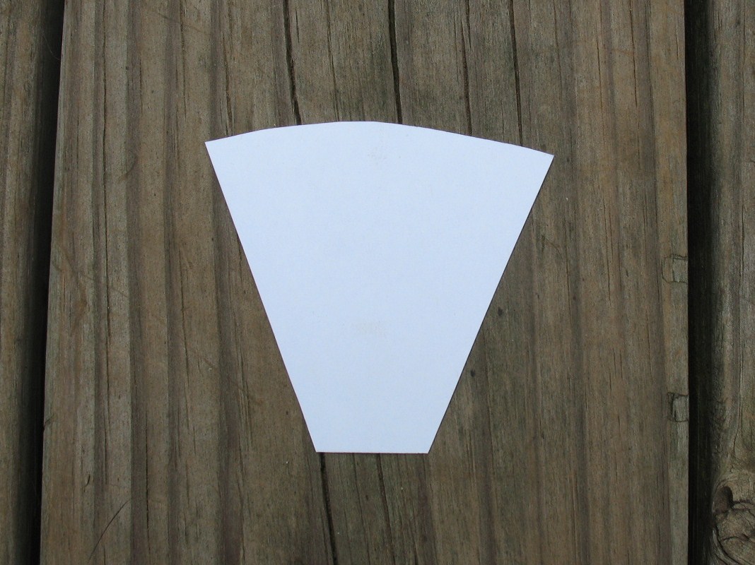 Next make a pattern for the cone out of cardboard or stiff paper. The pattern shown below is one inch wide at the bottom, three inches wide at the top, and two and three-quarters inches long. Pictured below: Pattern for paper cone blowgun darts.