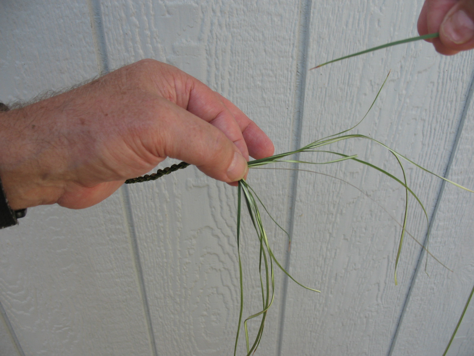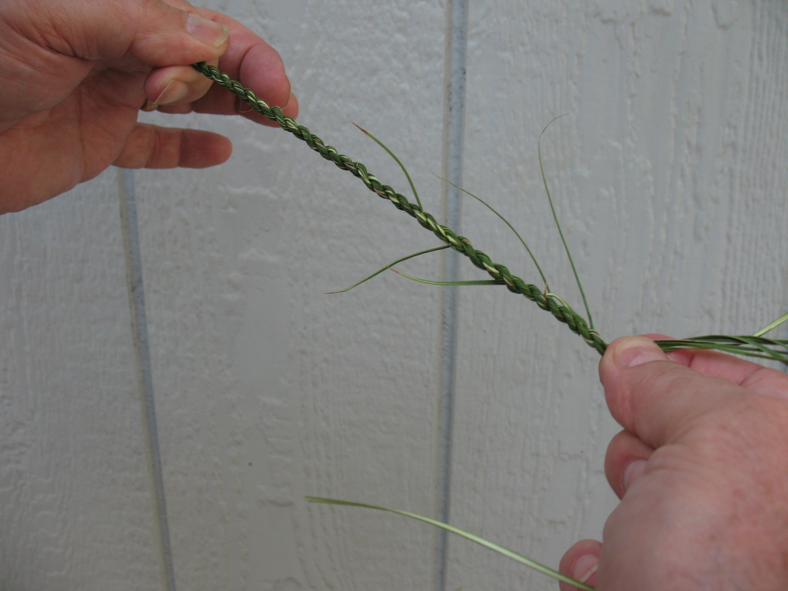 I always like to start a new fiber using the narrow end. This seems to keep the cordage from developing thick spots. Keep an eye on new fibers to make sure that they don’t all end in the same spot. If you have ends that are too close together, you can always trim one of them back a little.