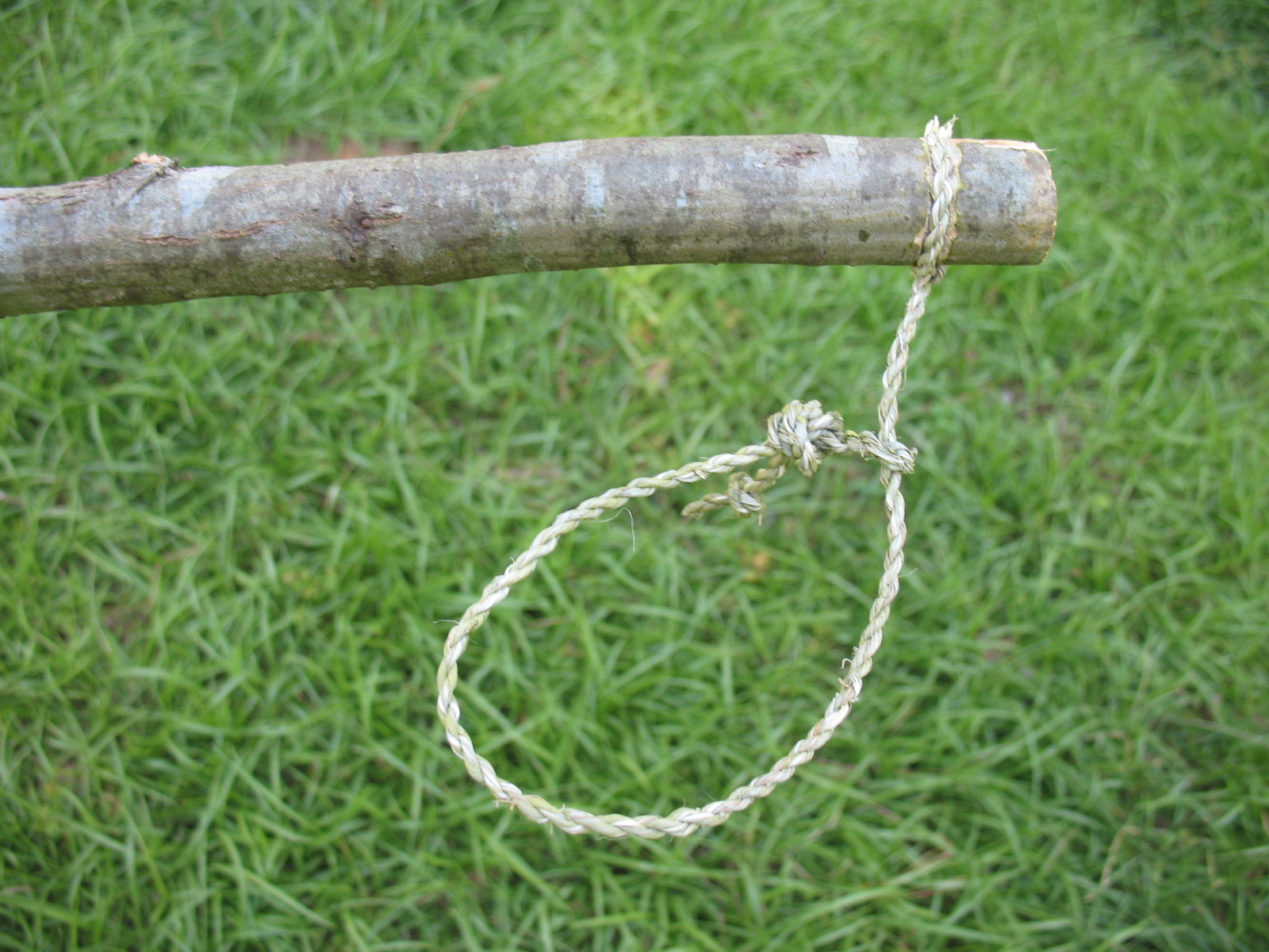 You can now use your atlatl just the way it is, but you might want to attach a loop of cordage to front of your atlatl. This loop will fit around your wrist and help you keep the atlatl from coming out of your hand when you throw a dart. More about this when I do a post on how to use the atlatl. Pictured below: top, groove around handle of atlatl to hold cordage loop; middle, cordage loop made of yucca fiber attached to atlatl; bottom, atlatl loop fastened around wrist.