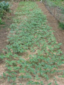 This is a classic example.  When you see a name like “Blue Lake 274” the first thing that comes to mind is that this must be some hybrid creation of modern agri-science.  Not the case at all.  The Blue Lake was developed by selective breeding from pole beans about fifty years ago.  I plant it every year and it produces scads of great tasting green beans.  I put up about twenty-five quarts of Blue Lakes off of one 3 foot by 25 foot bed.  One popular heirloom seed dealer sells 40 to 60 seeds for $2.00.  My local feed store sells them for $3.00 per pound.  Pictured below: top, Blue Lake 274 seed; bottom, Blue Lakes growing in my garden