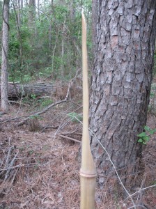I like to make my cane knives and spears out of river cane.  River cane is native to North America.  It does not grow as large as bamboo but it has thicker walls and is stronger than bamboo of the same size.  If you don’t have access to river cane, bamboo will do.  The lighter canes, like switch cane, are too small and thin walled to work for these projects.