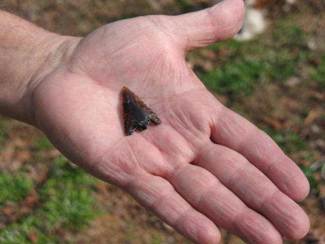 The bottom of a broken beer bottle can be used to make an effective arrow point.