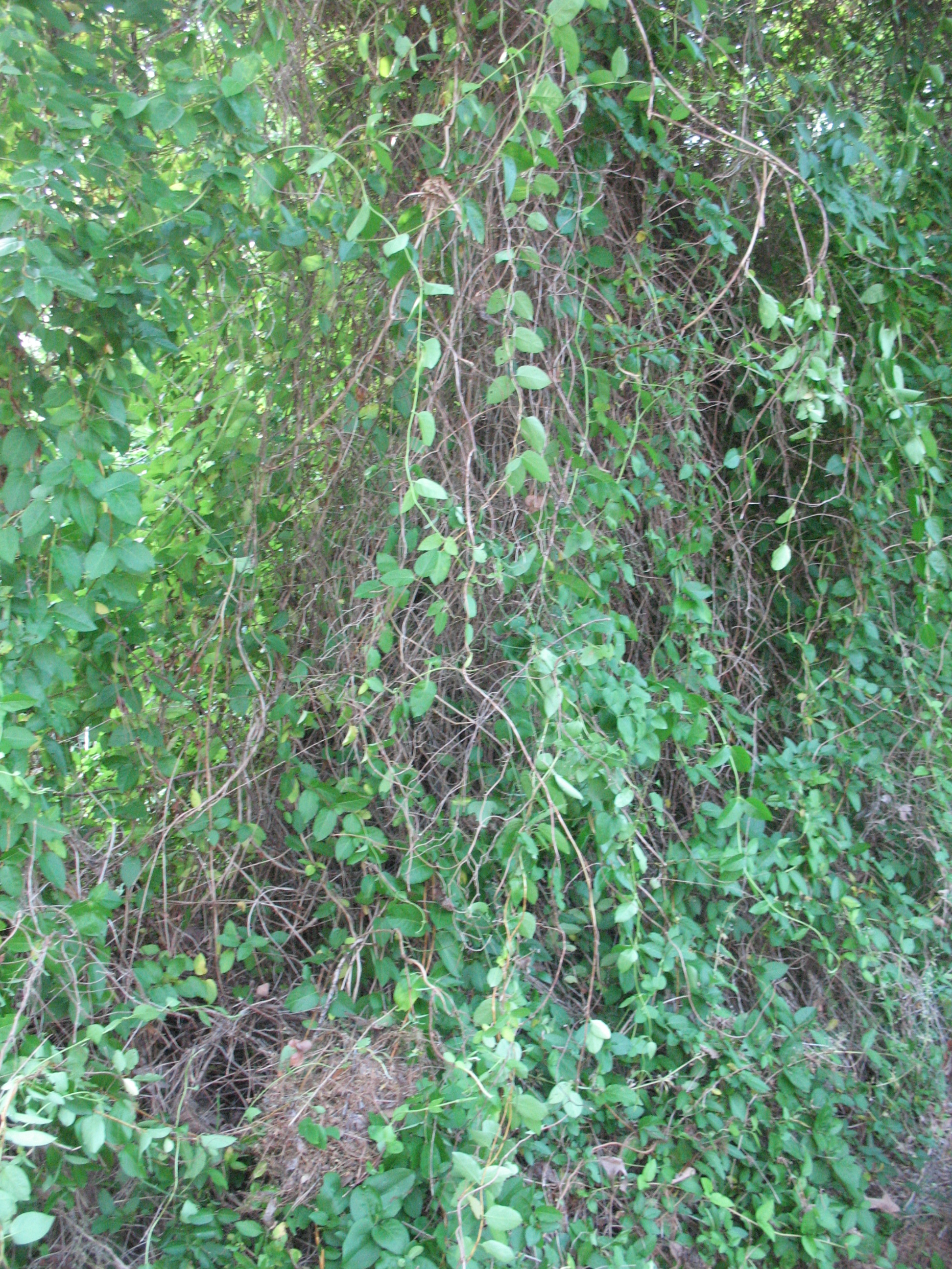 After you have gathered a bunch of vines, you want to run your hands down them to strip of the leaves and flowers.  If the vines fork or have side shoot can cut these off and save them to use also.  After I have a long vine cleaned I generally roll it up into a coil and set it aside to dry.  If you try to use the vines when they are too green, they may snap due to the pressure of internal fluids.  You can use green vines; you just have to be extra careful. Pictured below: Cleaned and coiled vines