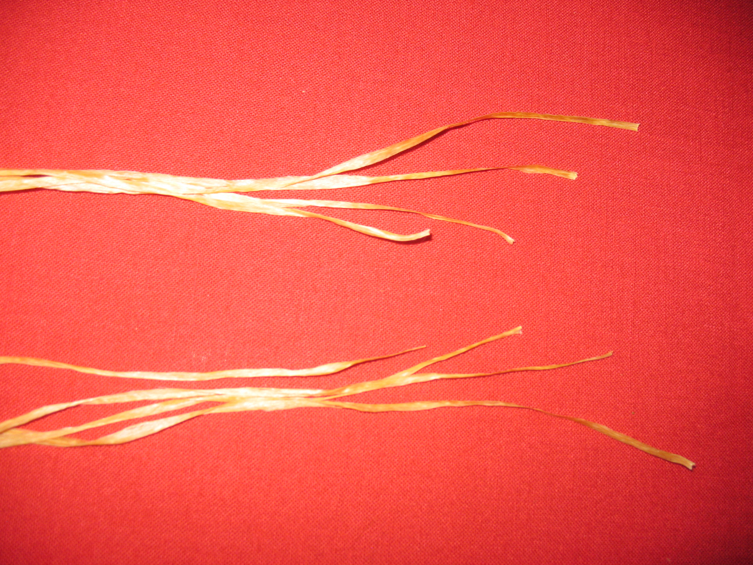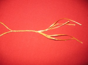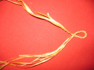 Now continue your reverse wrap with the melded bundles. Because you off set the strands to start with, the string will now taper down smoothly as you continue twisting.