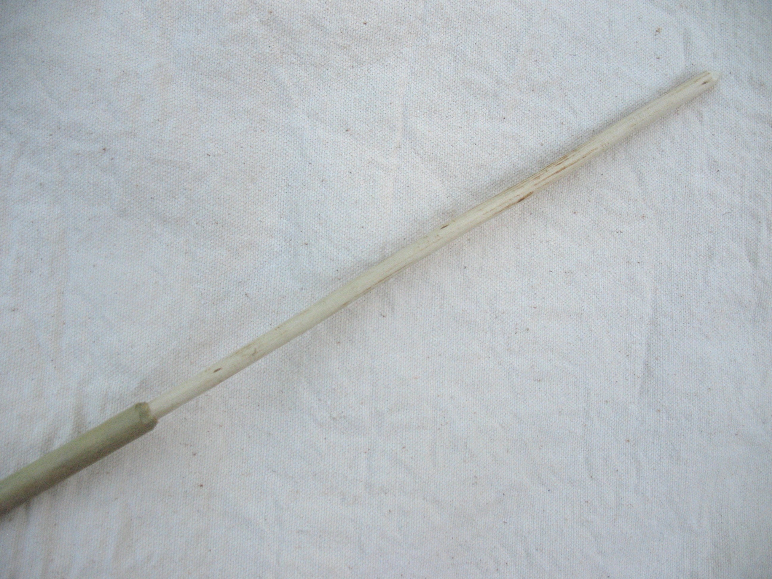 A piece of cane (bamboo or river cane) that is about three feet long and about the size of your little finger on the large end