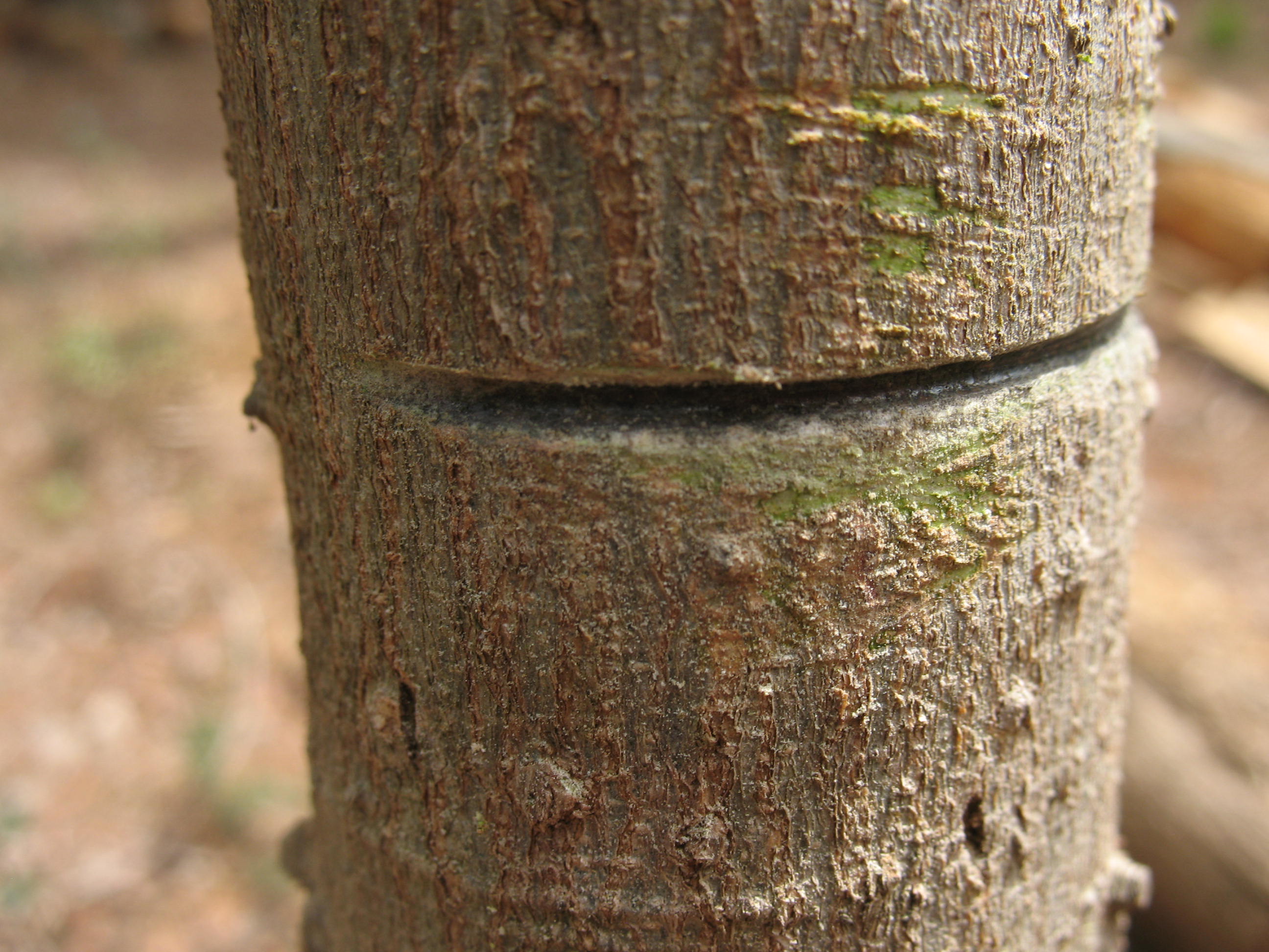 I thought maybe I had picked a particularly tough tree, so I got out my store bought wire saw and went to work.  In about eight minutes I had cut through the sapling.  Pictured below: top, store bought wire saw; bottom, cut sapling 08 real wire saw