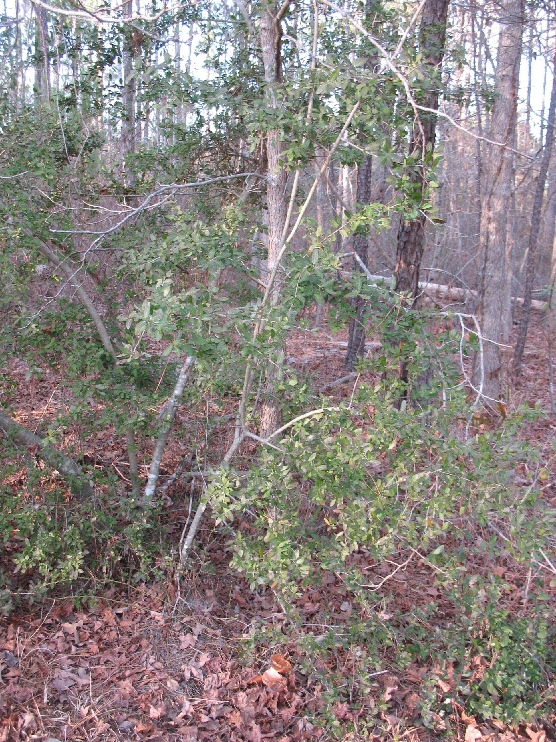 I don’t know for a fact that Yaupon is the only native plant with caffeine, but it does indeed have caffeine.  In fact it has more caffeine pound for pound than coffee.  Yaupon Holly is pretty easy to identify, especially in the winter when it is one of the few green shrubs in the forest.  Yaupon is a shrub.  I have rarely seen one that was over eight feet tall.  yaupon 01