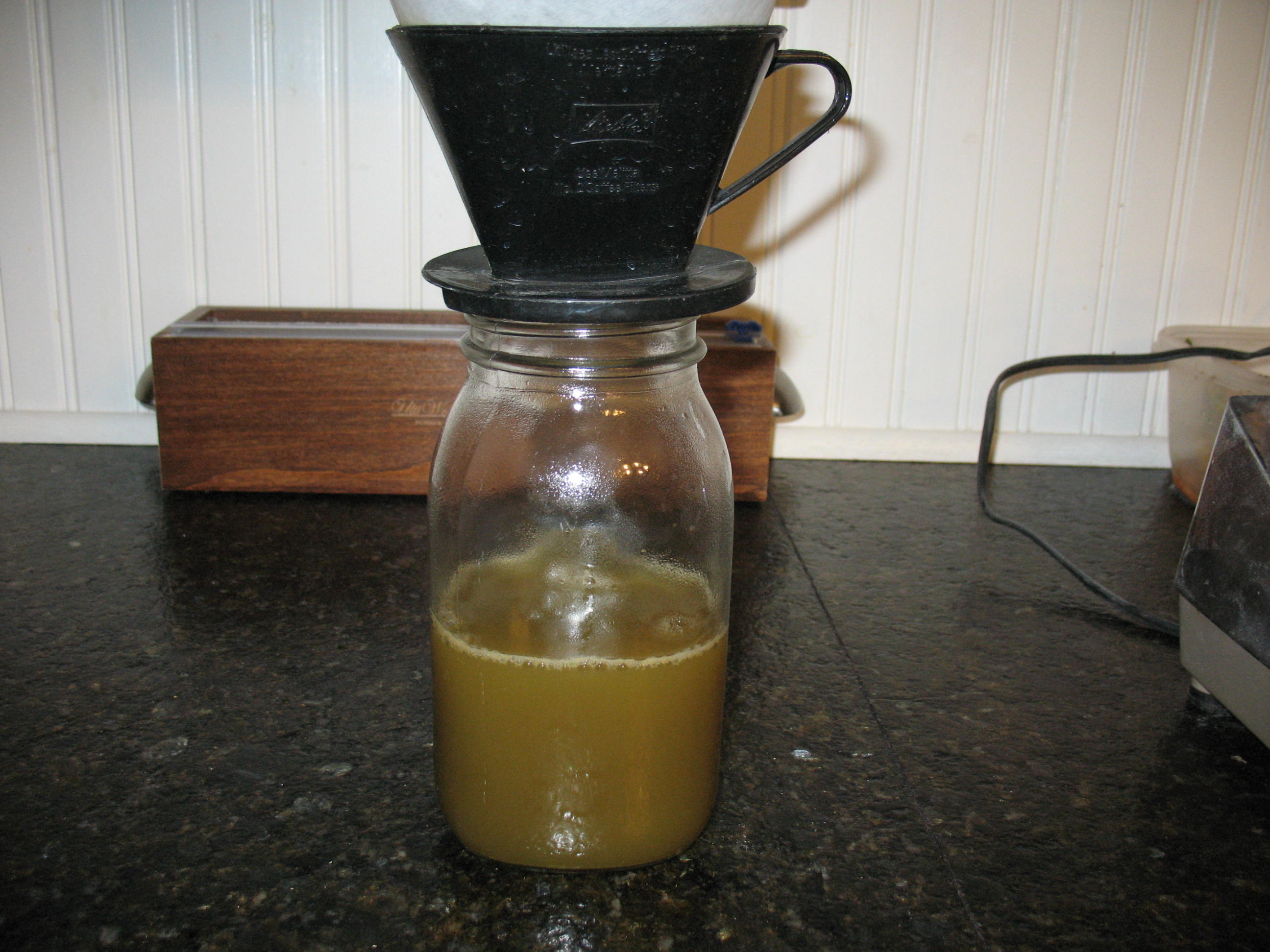Strain the mixture through a coffee filter to remove the solids. This can take a while.