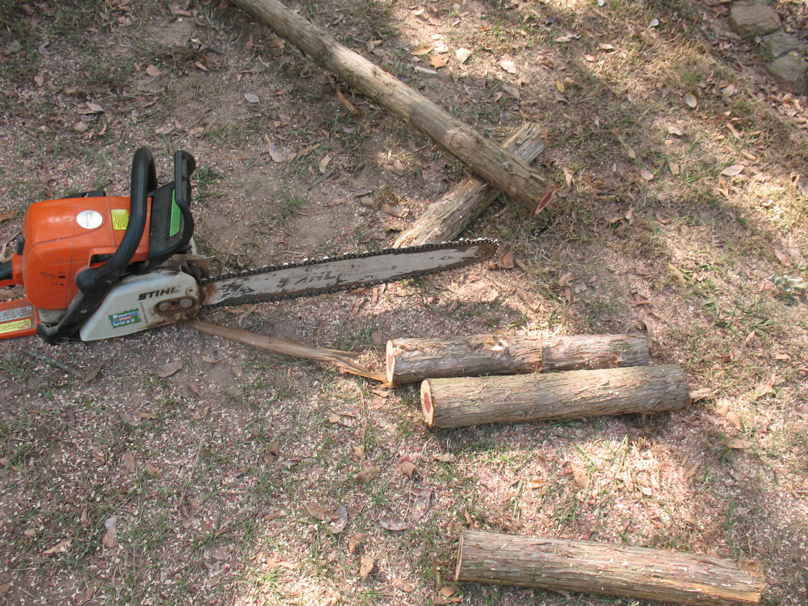 I used a chainsaw to cut the cedar into two foot lengths and split the logs in half with a splitting wedge.