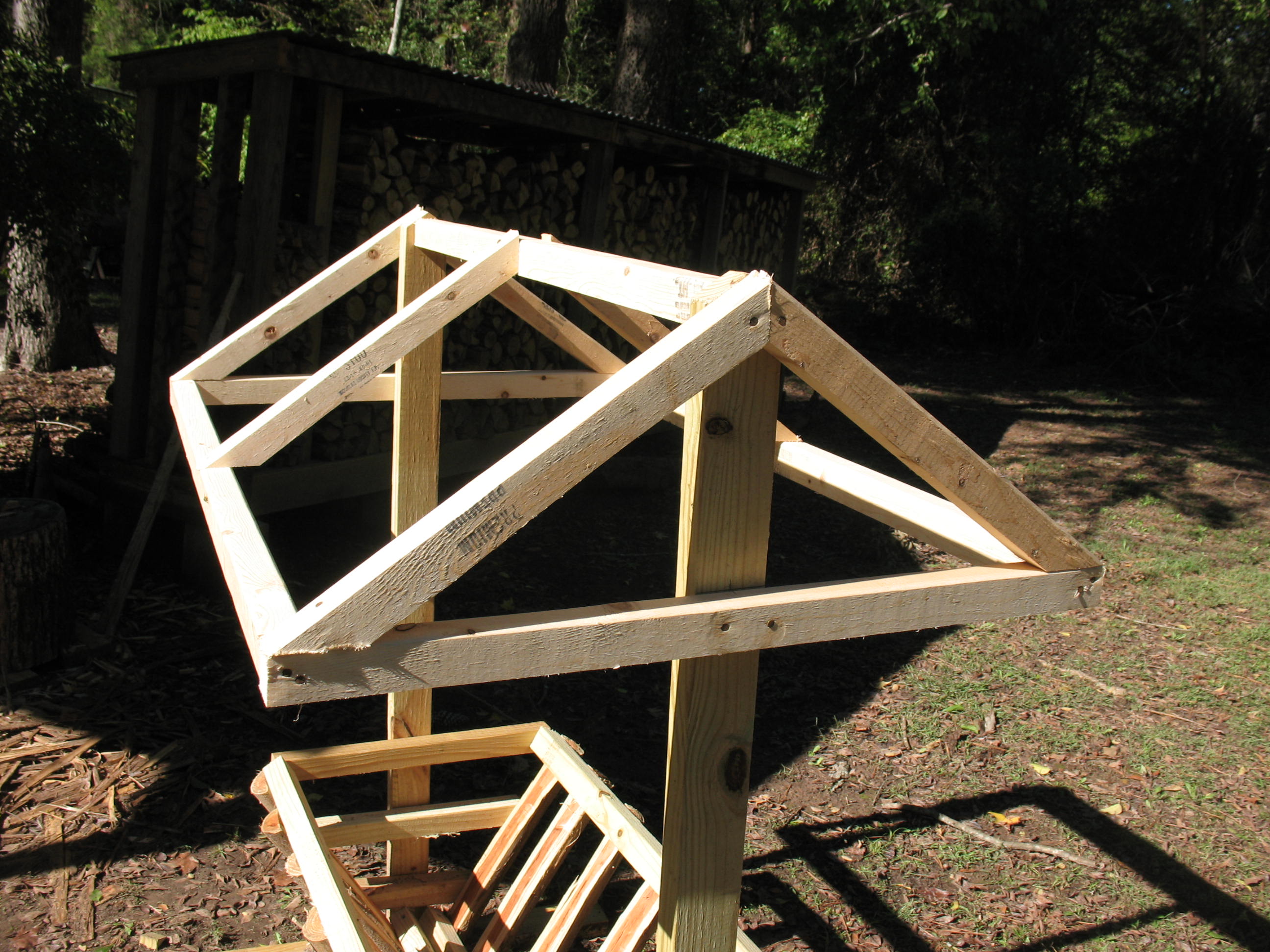 Rather than go into a lengthy explanation of how I built the framing for the roof, I will let you look at the pictures below. They are pretty self-explanatory.