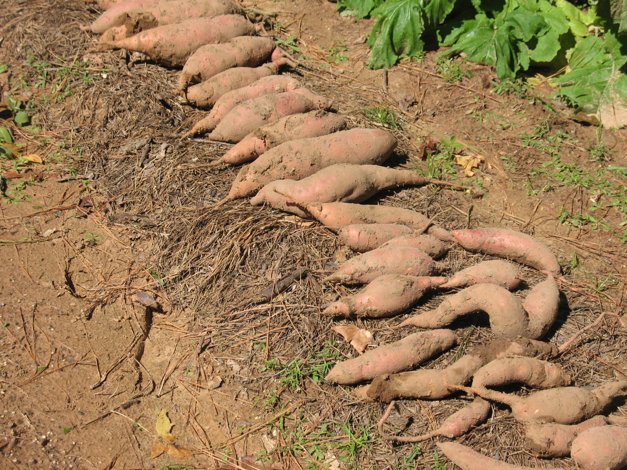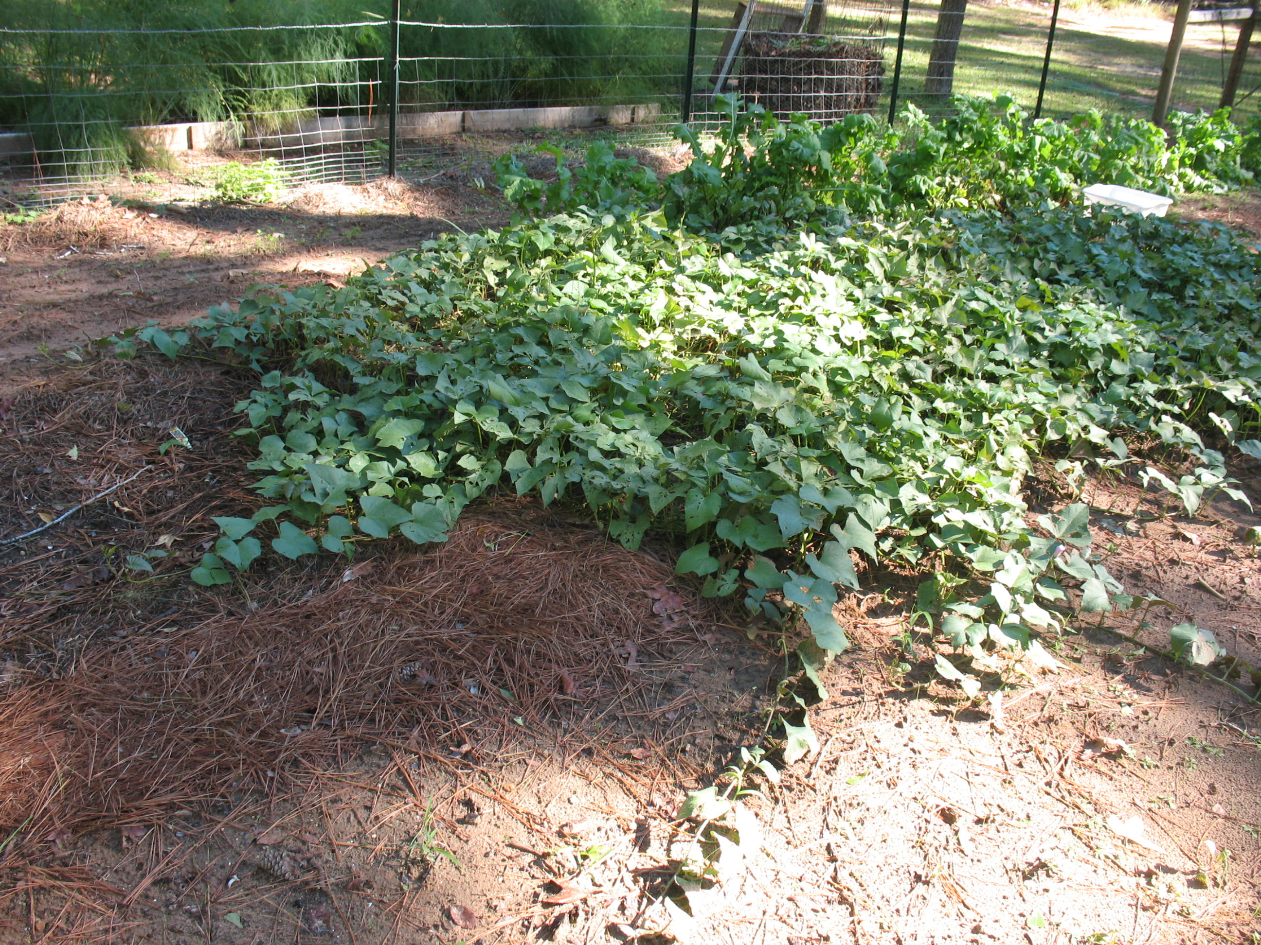 That afternoon I went out and brushed the dirt off of them (never wash them until you are ready to cook them) and hauled them up to the house. According to the scale I had 46 pounds of sweet potatoes. That’s an average of a little more than 1.7 pounds per square foot. Pretty good return on investment.