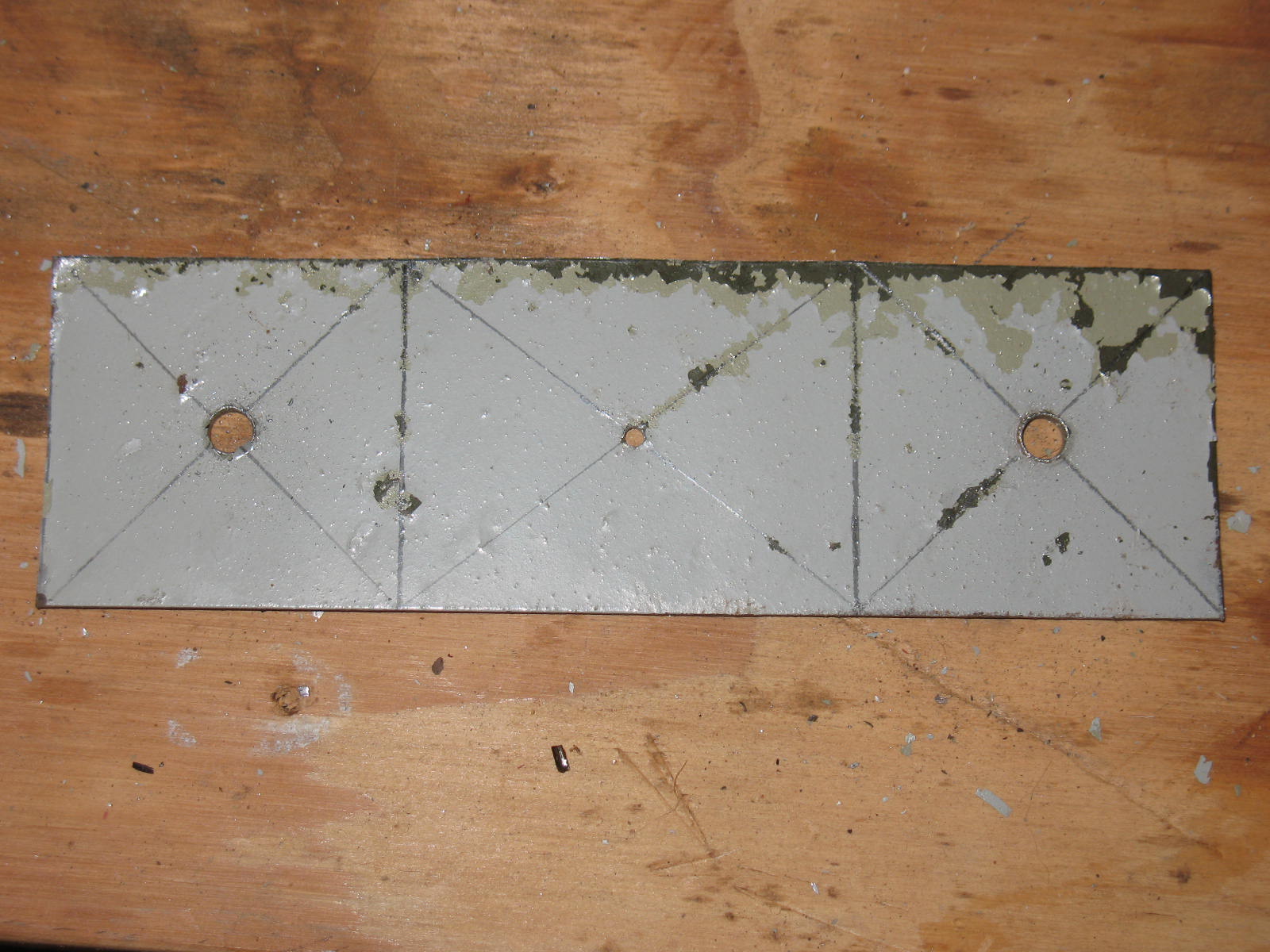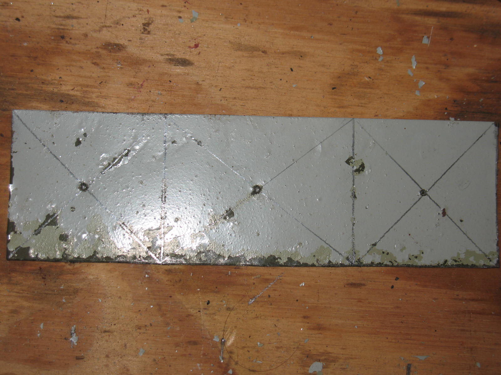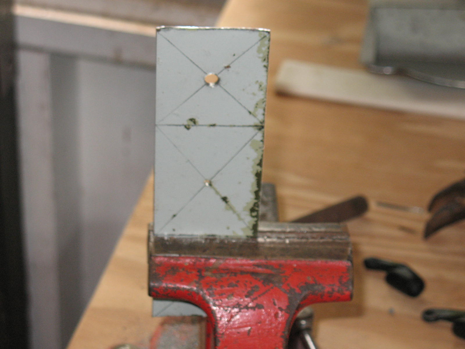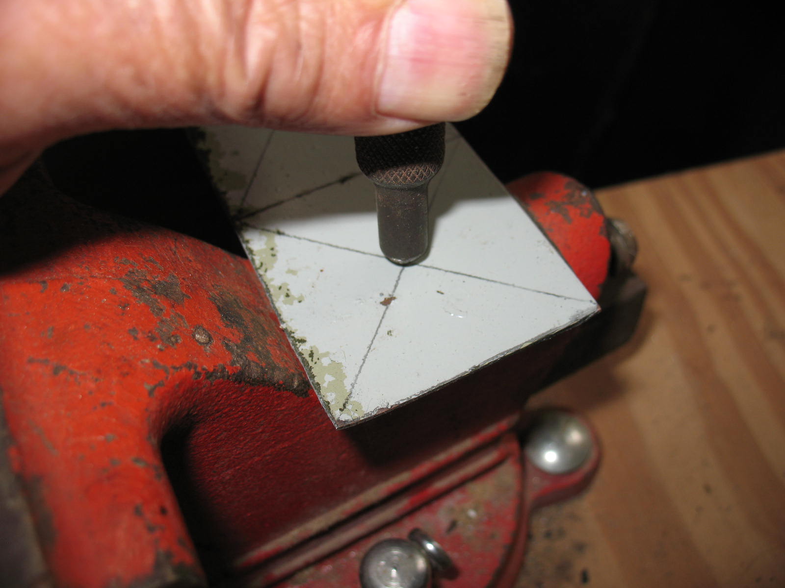 Then I used a hammer and punch to make a pilot dent in the center of each X.