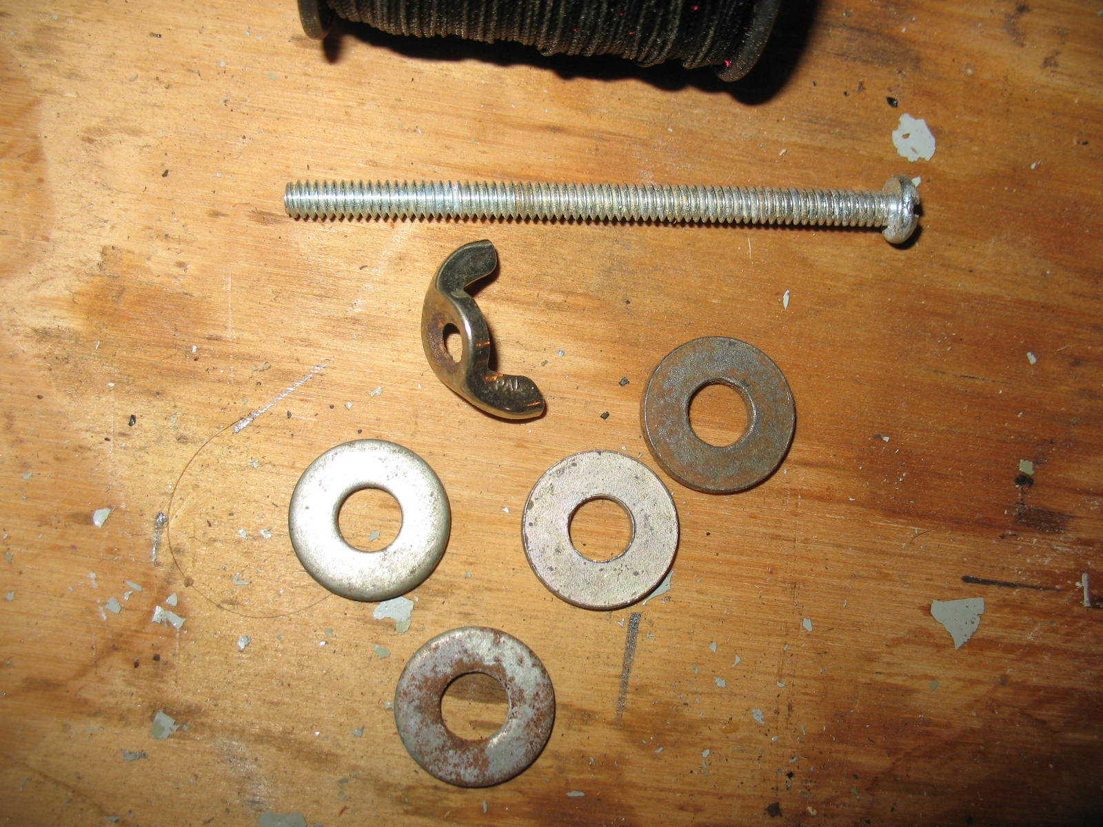 Now we are going to drill some holes in the strip, but first we need to get our other hardware together so that we can make sure that the holes are the right size. You will need a bolt that is long enough to go through the length of the spool plus about a half inch. The bolt also needs to be small enough in diameter to fit through the spool without binding.