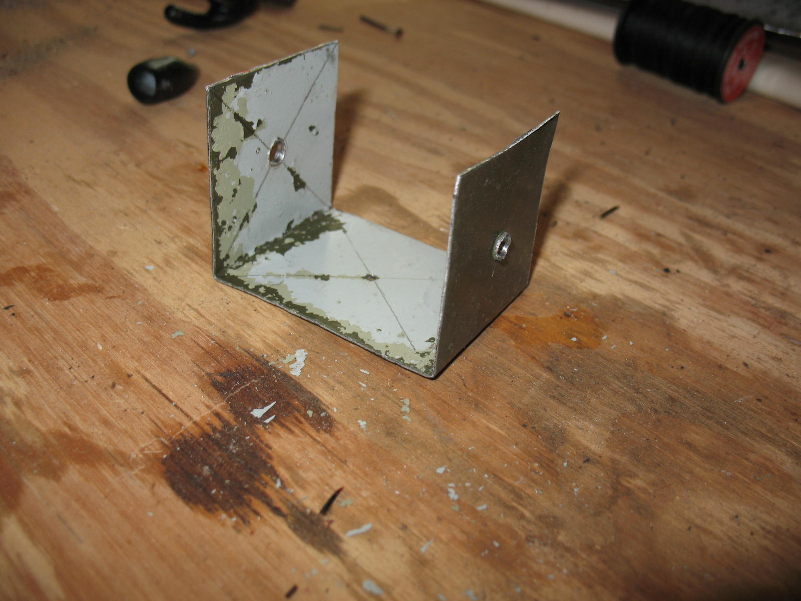 Serving is also wrapped around the center portion of the string to prevent wear at the point where arrows are nocked. You can buy a serving dispenser, but if you have a few simple tools it is super easy to make one. All that you need is a small strip of light gauge metal, some tin snips, a drill and drill bit, a bolt and wing-nut, and four washers. I used a scrap of metal and some odds-and-ends from my shop to build mine for zero dollars.