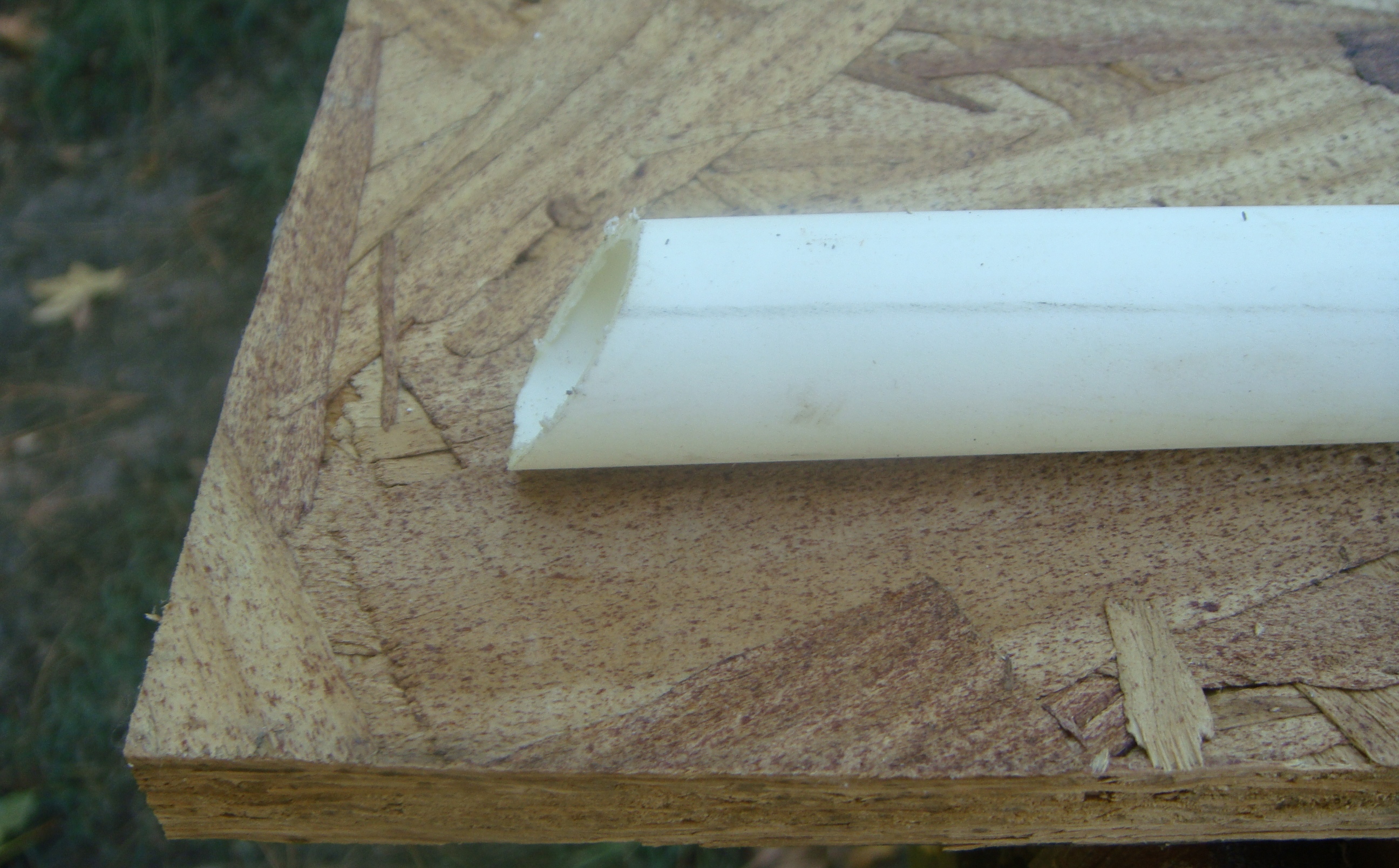 I cut one end of the 51” piece at a 45 degree angle and drilled a ¼” hole in the part sticking out.