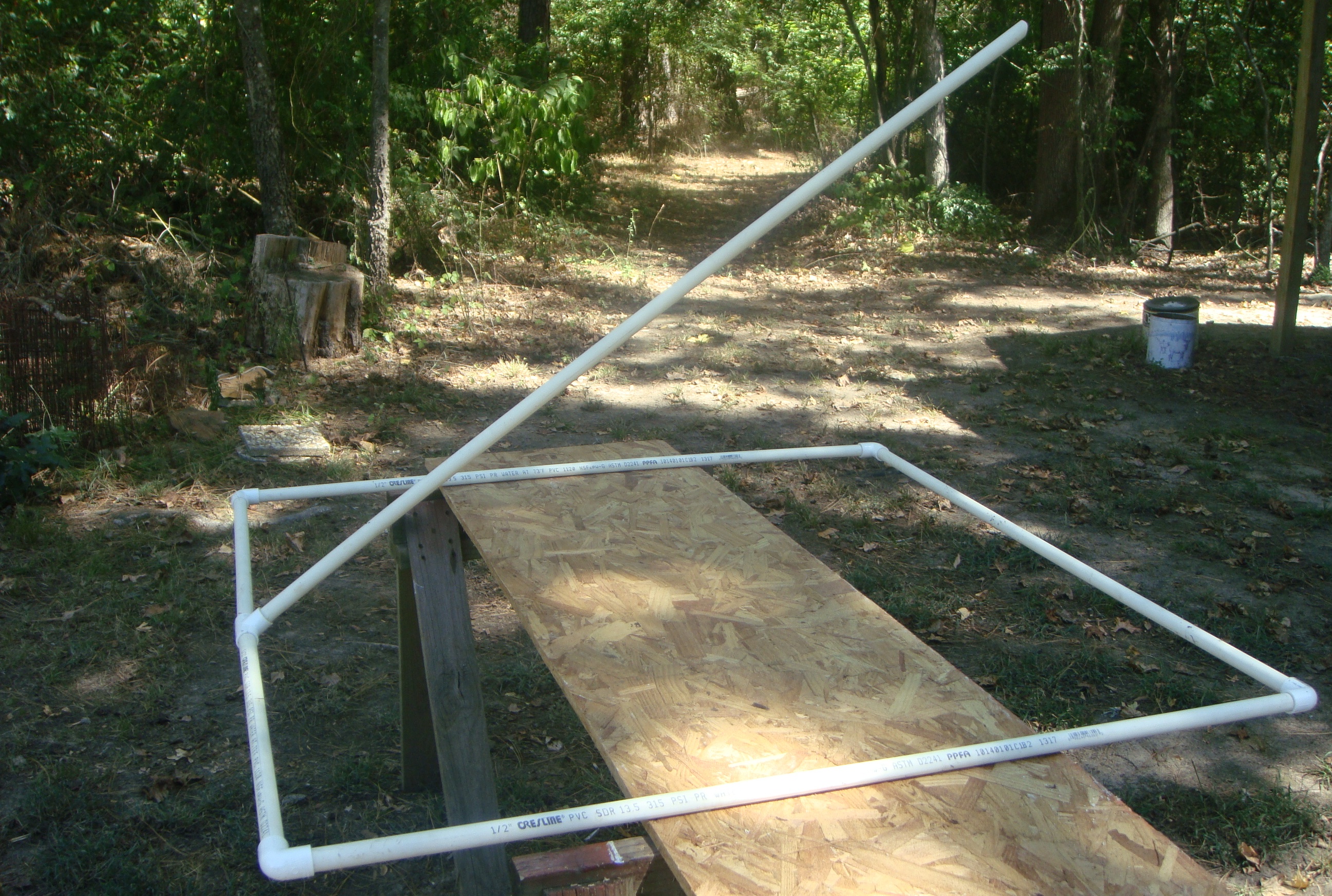 Next I put a PVC 90 on each end of the cross piece and then push the side pieces into the 90’s.