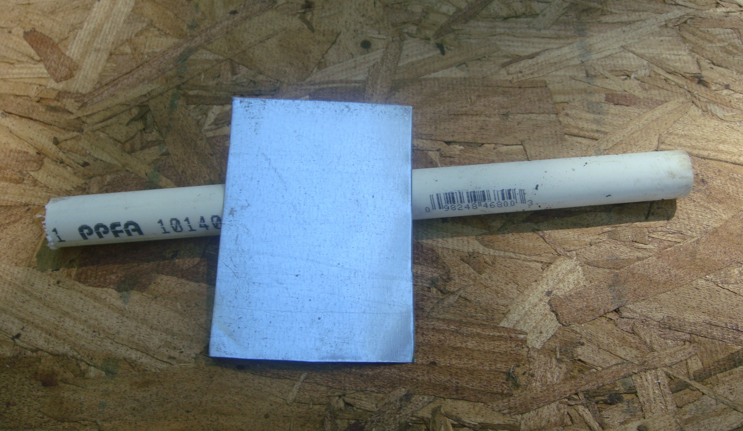 The back of the square framework will be held to the tree using a bracket made from the 3” x 6” sheet metal. To form the bracket I used a short piece of PVC and bent the sheet metal into a “U” shape to fit over the PVC.