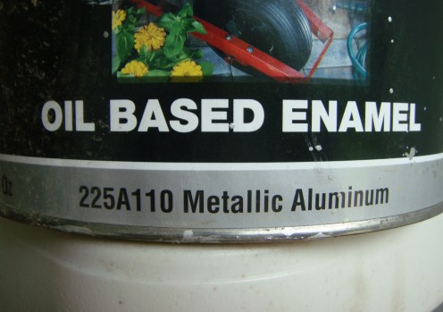 The idea for this tarp came to me in a blinding flash of the obvious when I was working on one of the out-buildings on my farm.  The building in question is about 25 years old and is covered in corrugated sheet metal.  The metal was starting to look a little on the rusted side, so I decided that I would paint it with some Rust Stop metallic aluminum paint from our local Ace Hardware store.  I bought a gallon of the stuff for about $30 US.
