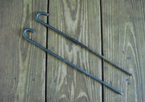 The other six are seven inches long and made of aluminum. These are actually aluminum nails that are used to hang rain gutters. You can buy them at the hardware store for about fifty cents each.