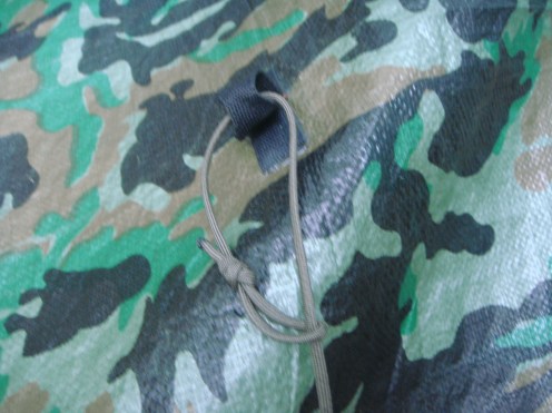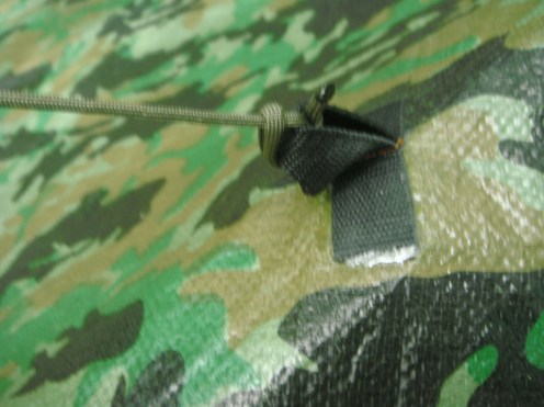 Attach one end of the guy line to the tarp’s center loop as pictured below.