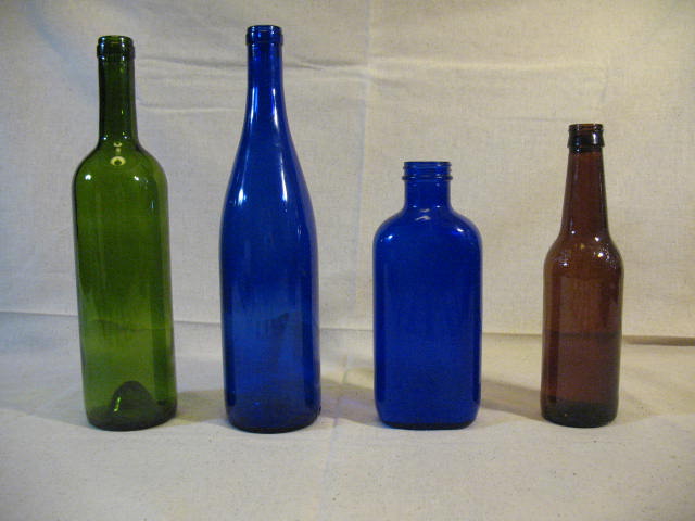 Finally, an acquaintance of mine, who is a first class knapper, turned me on to an inexpensive and virtually limitless supply of locally available knapping material. He told me to do my practicing on old glass bottles. When you think about it, it makes sense. After all, obsidian is nothing but a natural glass made by volcanoes; so instead of buying expensive natural glass, why not practice on cheap man-made glass. What a revelation! I dug through the trash for an old beer bottle and started right away. And you know what, my first glass point turned out pretty decent. Since then I’ve been hooked on knapping old glass bottles. I now refer to beer bottles as my East Texas Obsidian, but I didn’t stop with beer bottles. I started keeping my eyes open at garage sales and thrift stores, and buying colored bottles. I’ve turned out some really nice green and blue points using old bottles. Pictured below: Colored bottles.