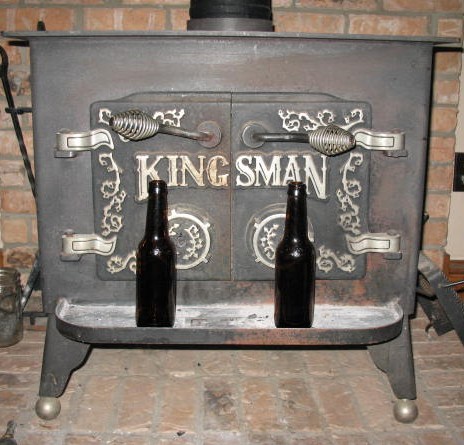 You learn pretty fast that some bottles are better than others, and some parts of the bottle will make better points. When it comes to beer bottles, I like to use what they call “bar bottles.” These are the bottles that can be refilled, and the glass in them is a little thicker than the throw-away type bottles. One problem with bottles is that they are curved; and the smaller the bottle, the tighter the curve. This can be a problem if you’re making a very large point. I’ve found that the best part of the bottle to use, especially on beer bottles, is the bottom. The glass on the bottom of the bottle is thicker and the curve of the glass is not as pronounced as the glass on the sides of the bottle. Another thing that I’ve learned is that the way the glass breaks is affected by the temperature. If the glass is cold it is more unpredictable. I like to set a bottle by my wood stove or by a campfire and warm it up a little before I break into it. You don’t want to get it so hot that you can’t hold it; just warm it up. Pictured below: Warming bottles by my wood stove.