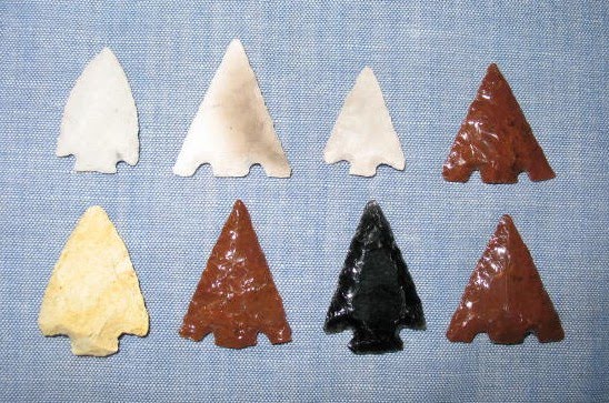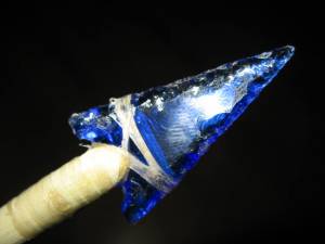 By the way, I have since learned that Native Americans used glass, when they found it, to make some of their points. Ishi, the famous “last wild Indian” made beautiful points from broken bottles, so this is not just some modern invention. Shown below: Finished glass points.