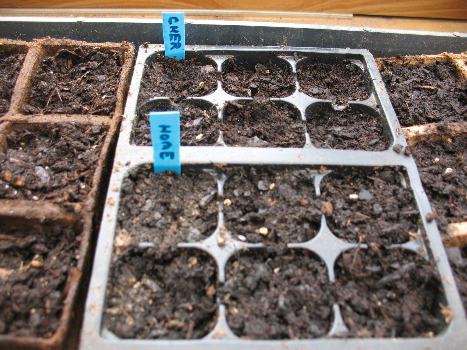 You need to check your seed pots daily and keep them moist. Don’t drown them; just trickle a little water in to keep them from drying out. Keep an extra close eye on peat pots as they seem to wick the water away faster than plastic pots.