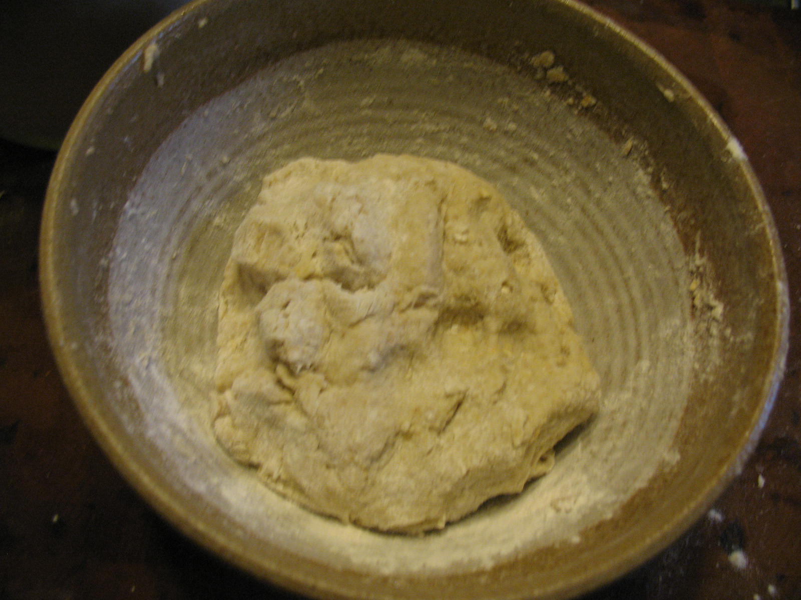 The dough will probably be pretty sticky at this point. Sprinkle it with small amounts of flour as you kneed the dough. Keep adding flour until the dough no longer sticks to your fingers.