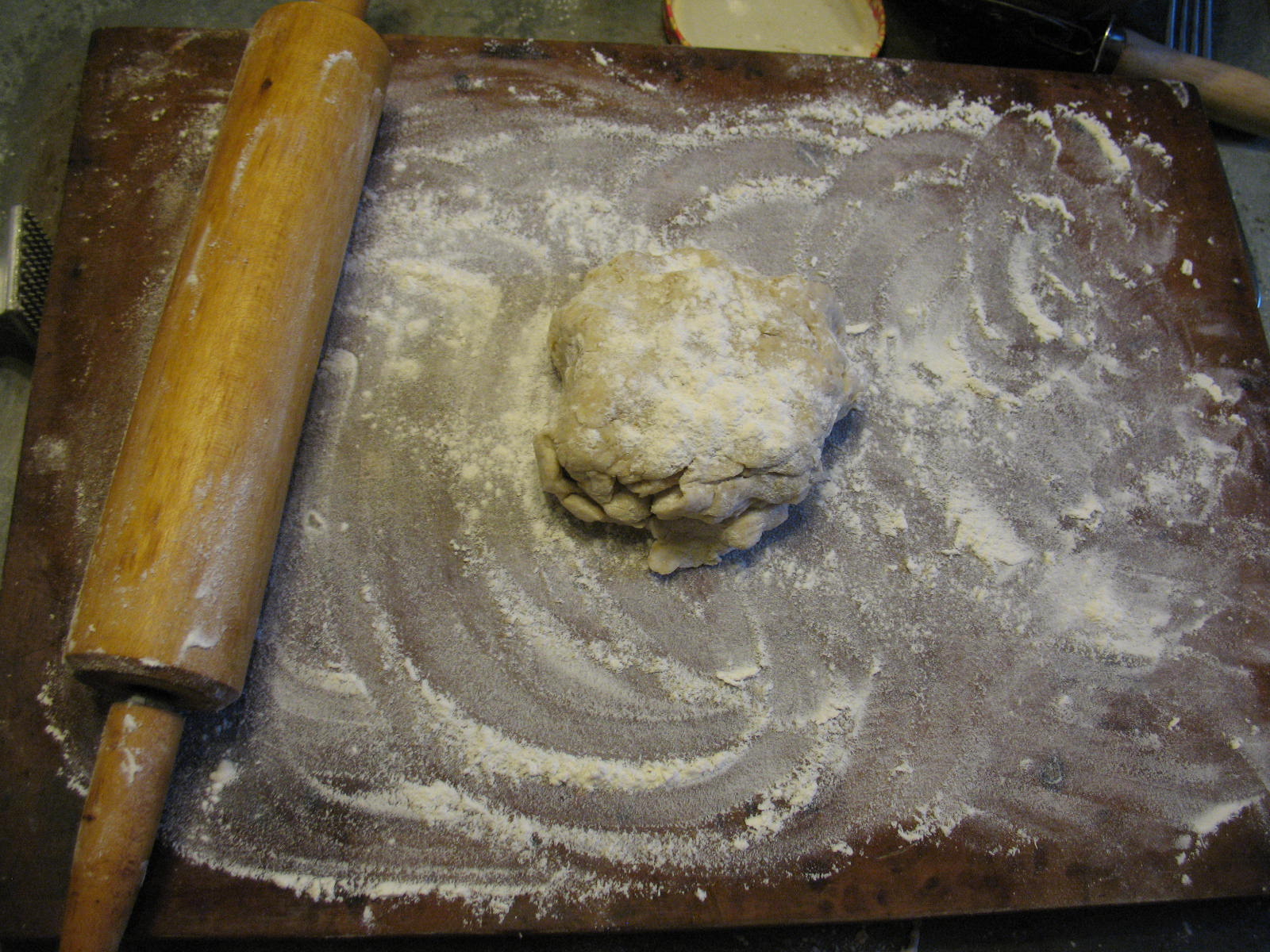 Sprinkle your cutting board with flour and rub flour on your rolling pin.