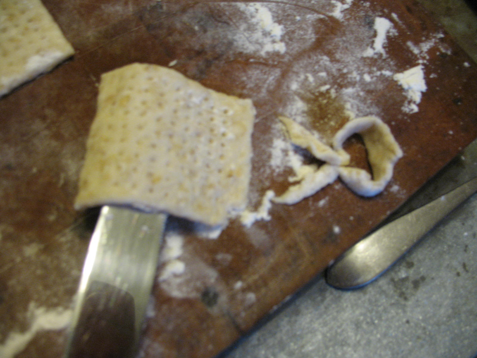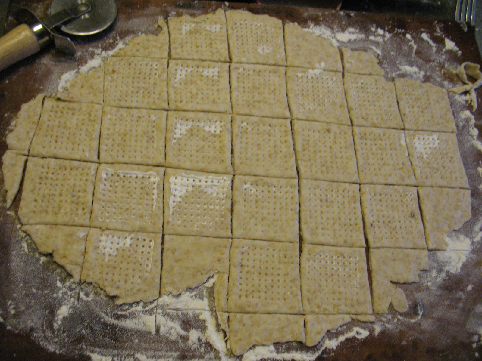 Now take a pizza cutter, or just a regular knife, and cut out your crackers. I make mine about two inches square.