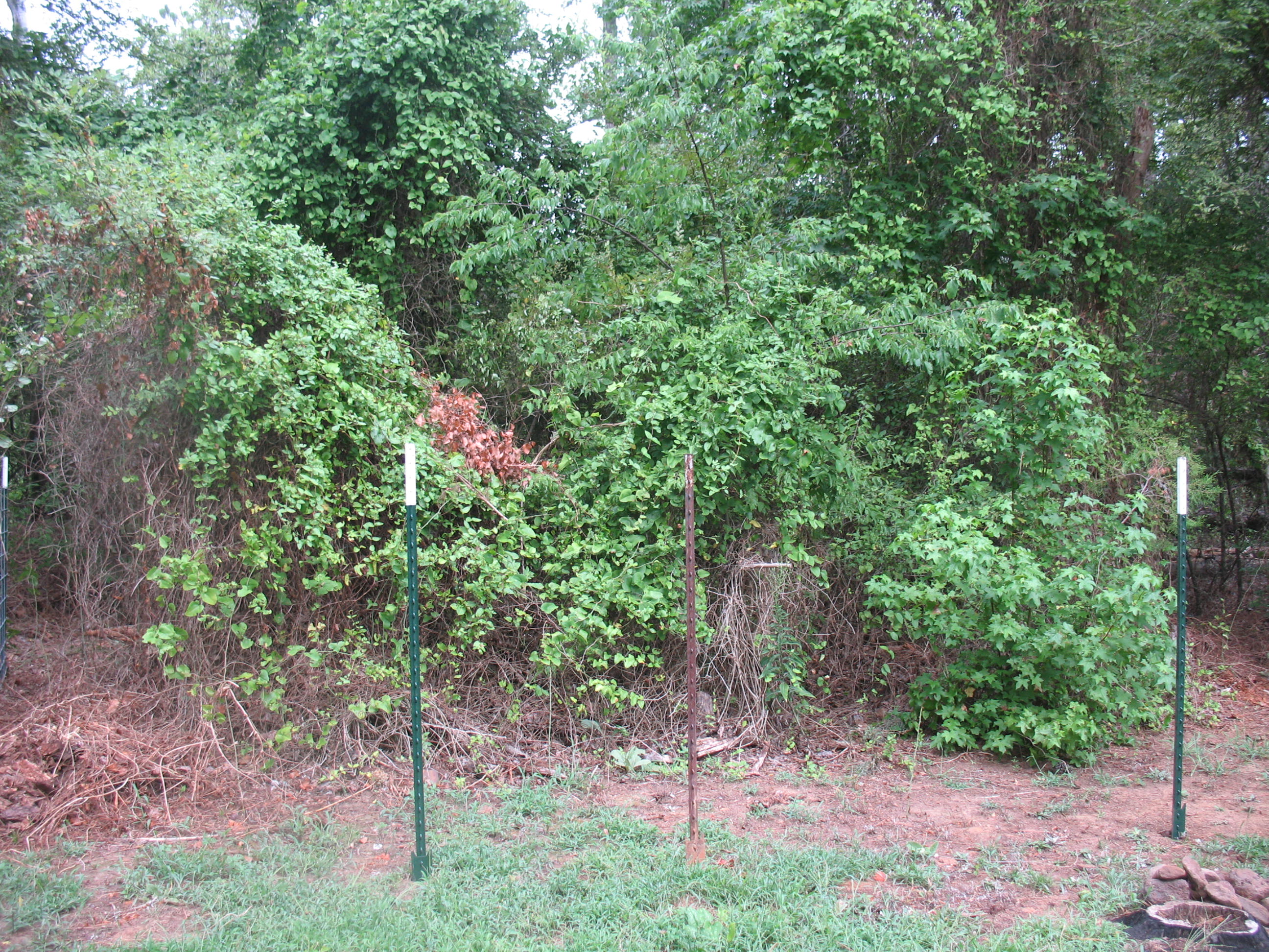 When there’s nothing left in the pen but bare branches and vines I go in with my machete and it’s a couple of hours work to cut up the bare vines and throw them and the branches out into the woods.