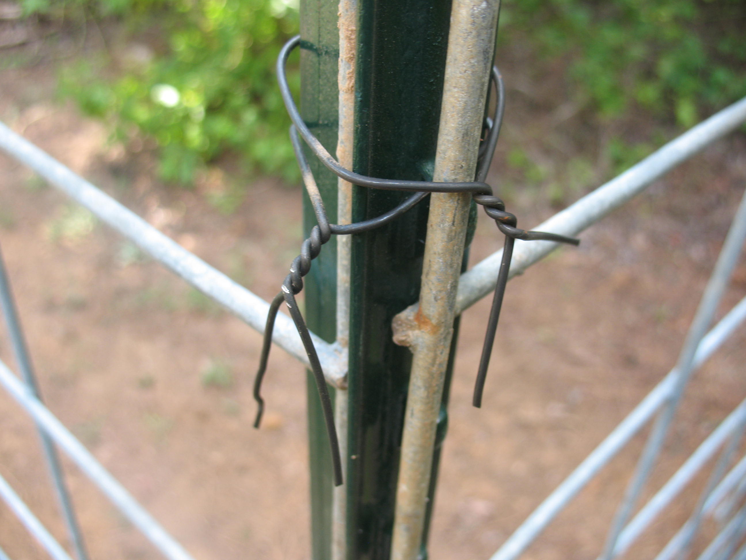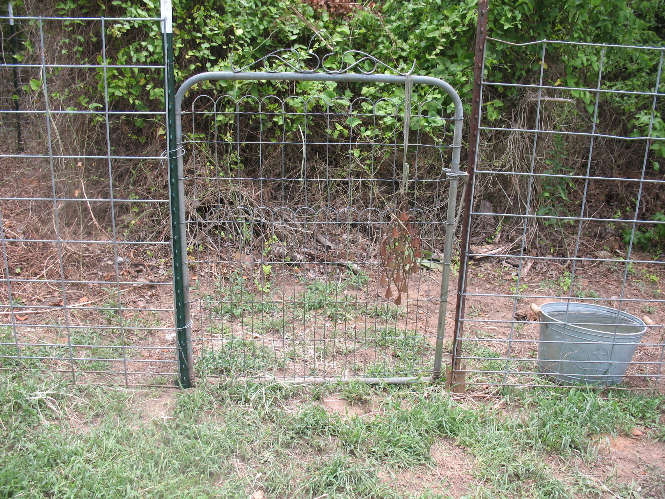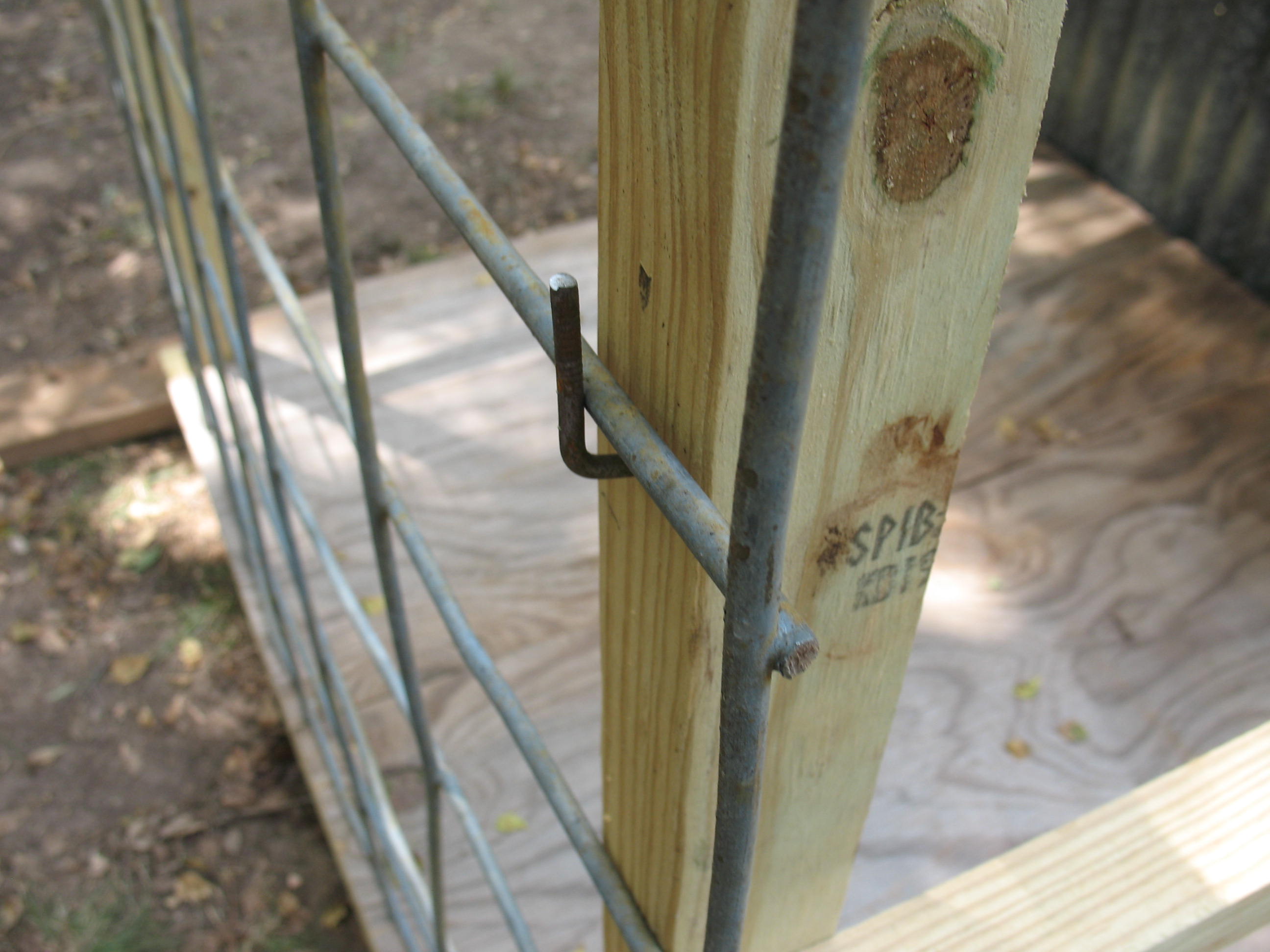 I had an old gate from a chain link fence laying around so I wired it up between two T-posts to give me access to the pen.