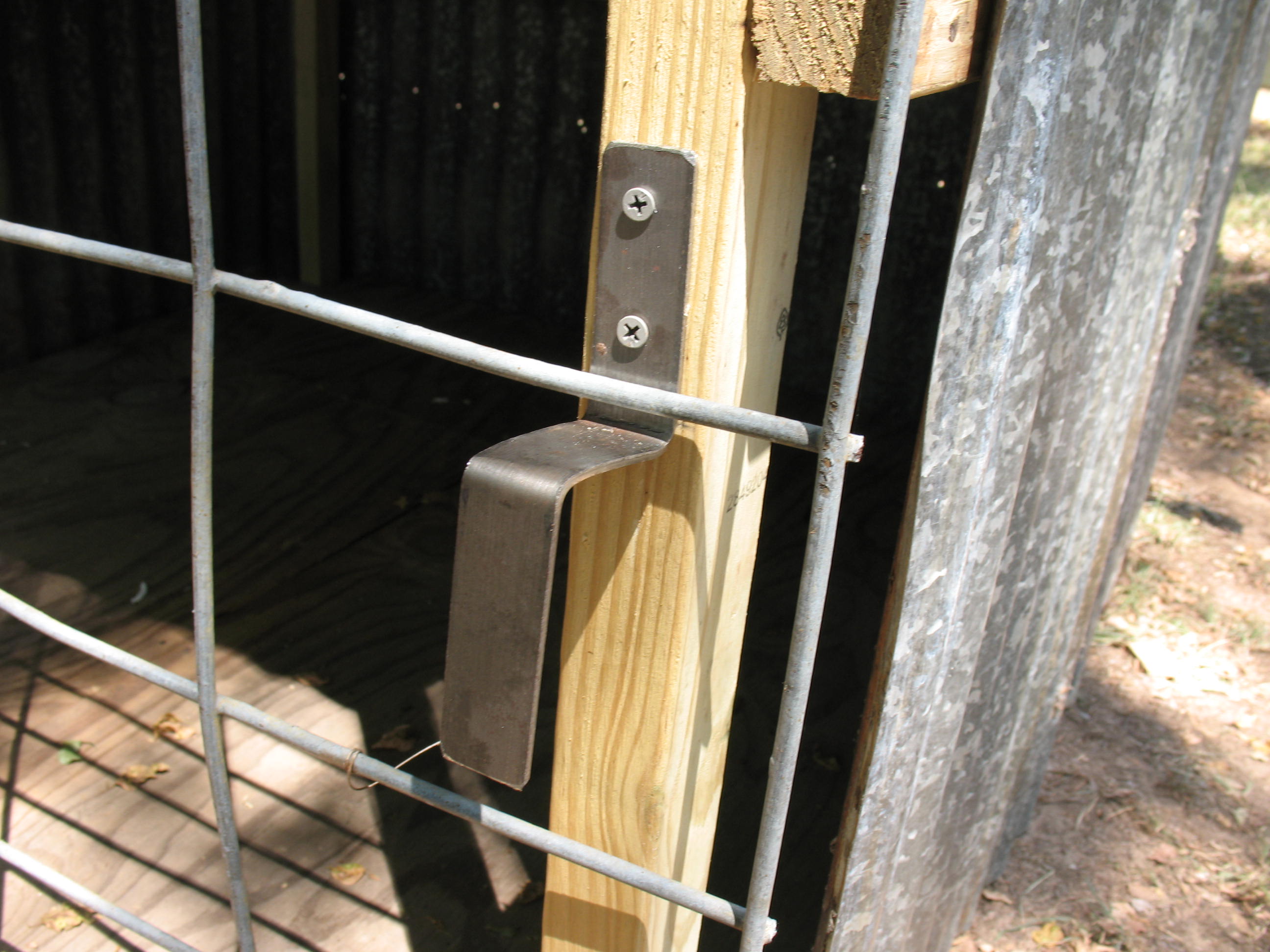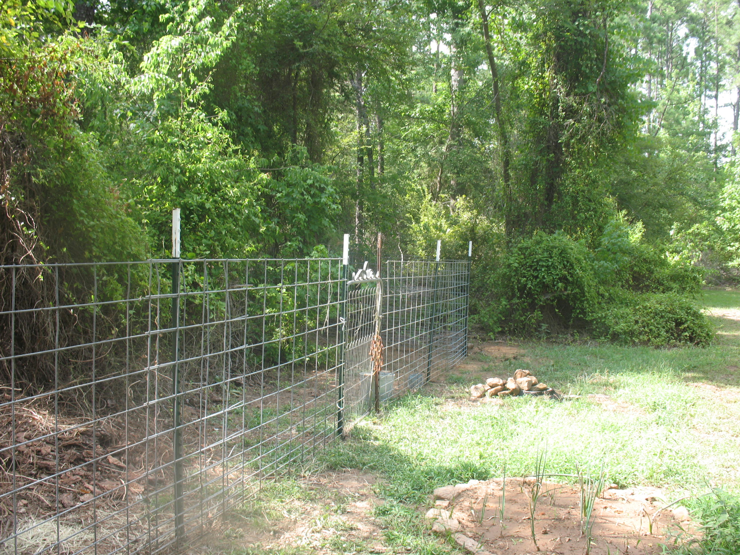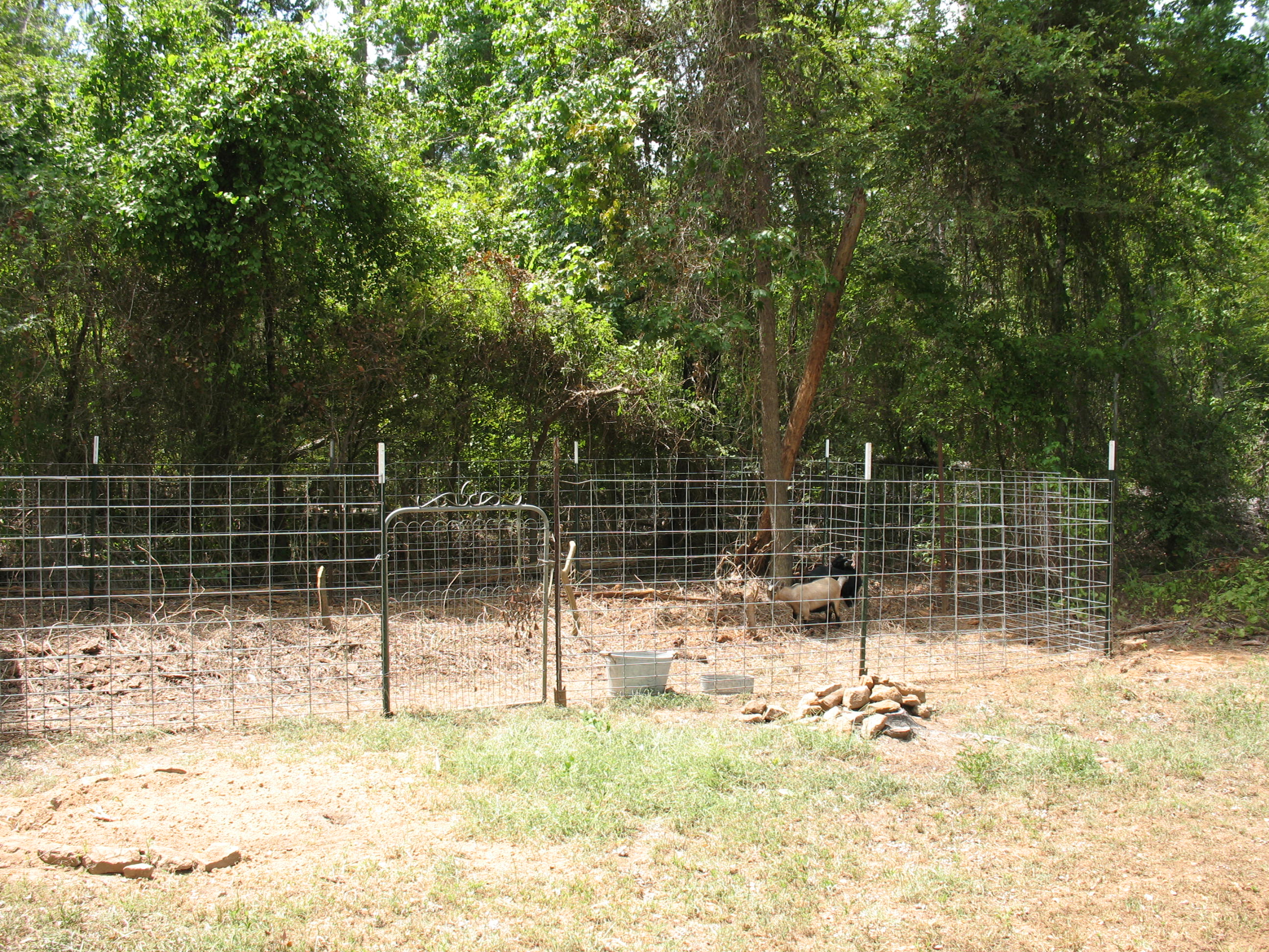I had an old gate from a chain link fence laying around so I wired it up between two T-posts to give me access to the pen.