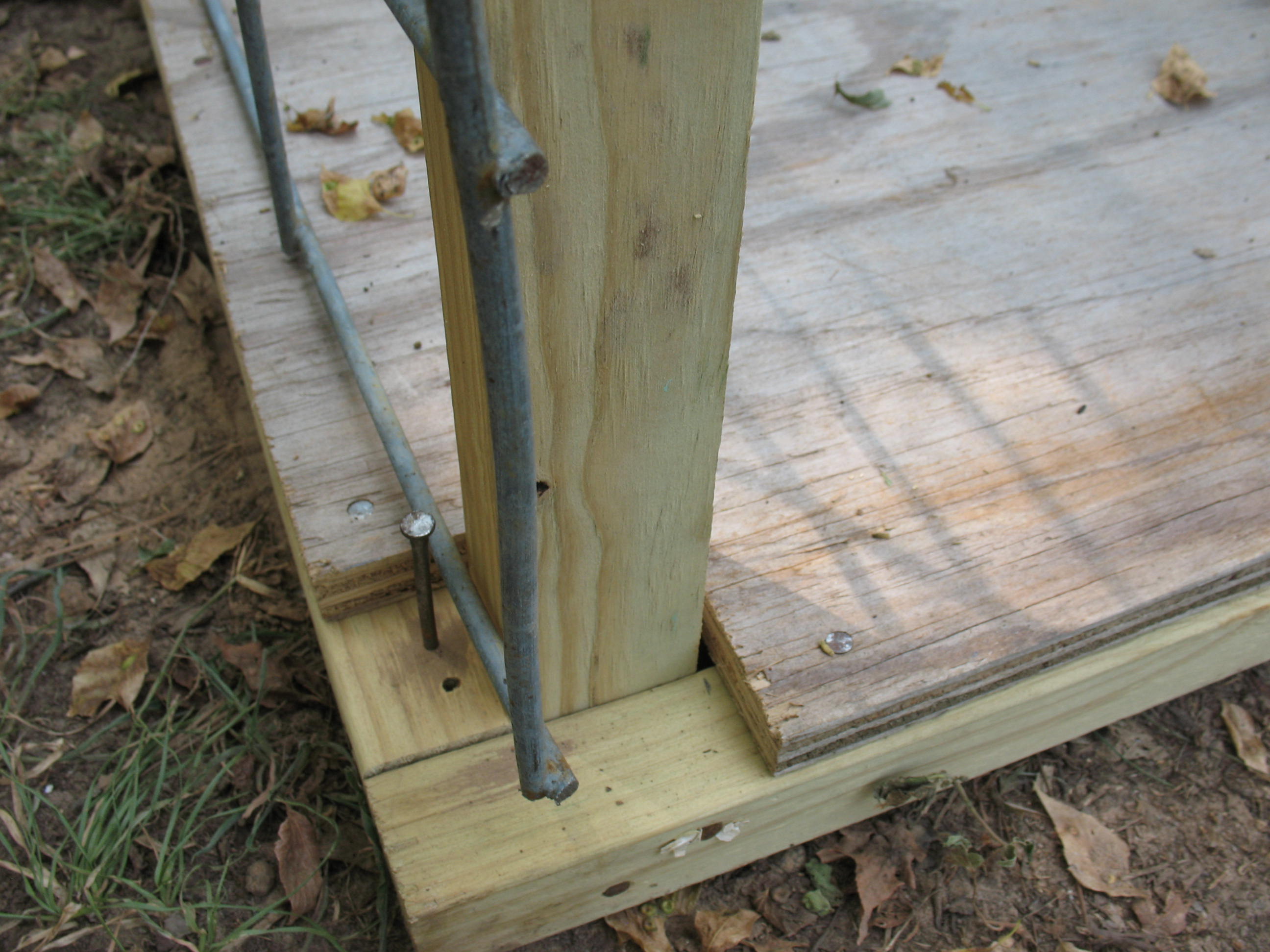 Since I move my goat pen from location to location around the farm, I wanted to build a fairly light-weight shed that I could move along with the pen. As with most of my projects I recycled a lot of the materials for this shed from stuff that I had lying around. I did have to buy four treated 2 by 4’s eight feet long, but the rest of the materials are recycled. I decided to make the shed four feet by four feet square and about four feet tall. This is how I built the shed.